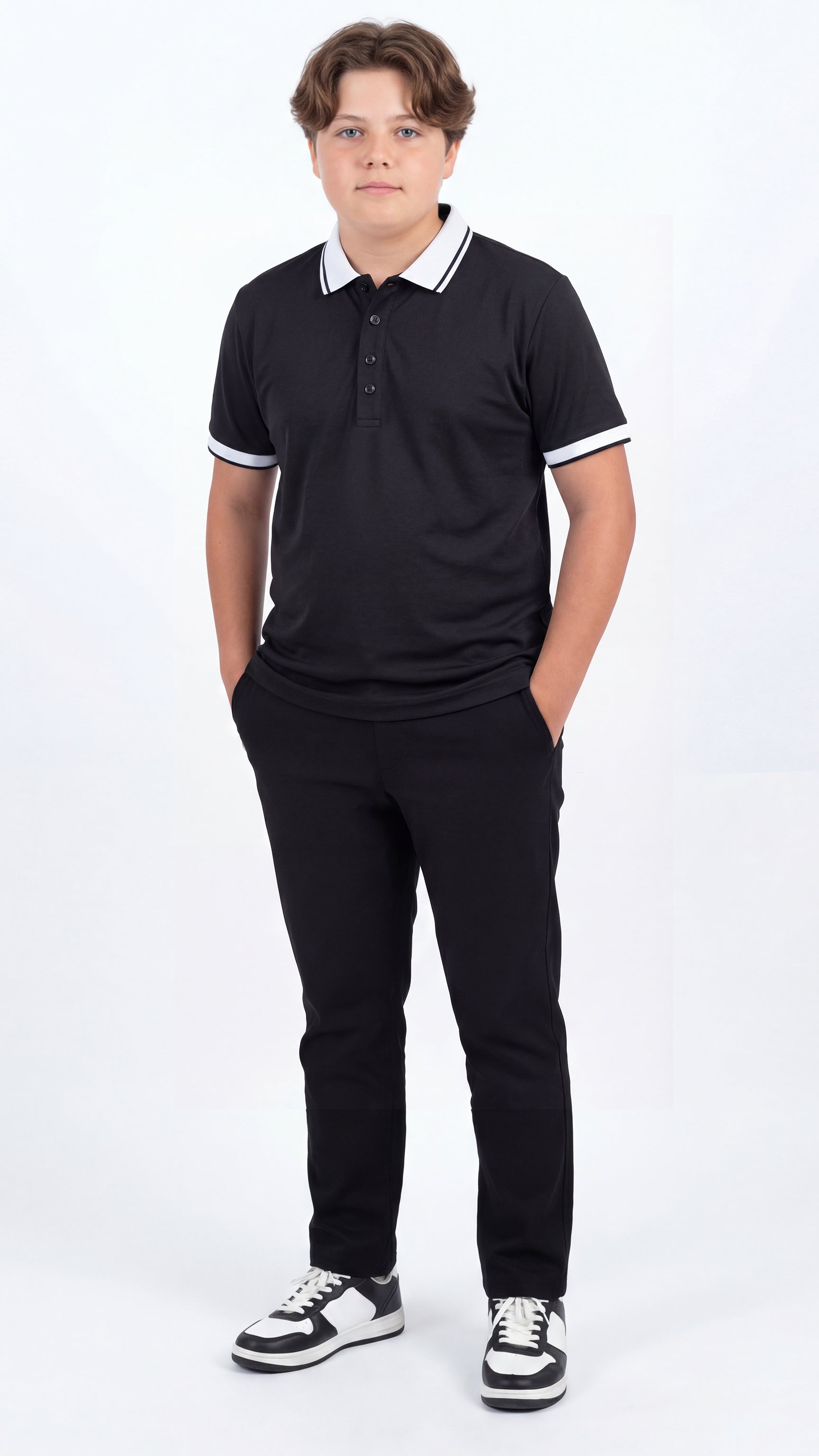 Crafted for comfort and durability, this polo ensures a cool and confident look for any occasion. The white accents add a sophisticated touch, making it a standout piece in his collection. Keep your young trendsetter on point with the Black Trim Polo – where classic meets contemporary in a burst of brilliance!