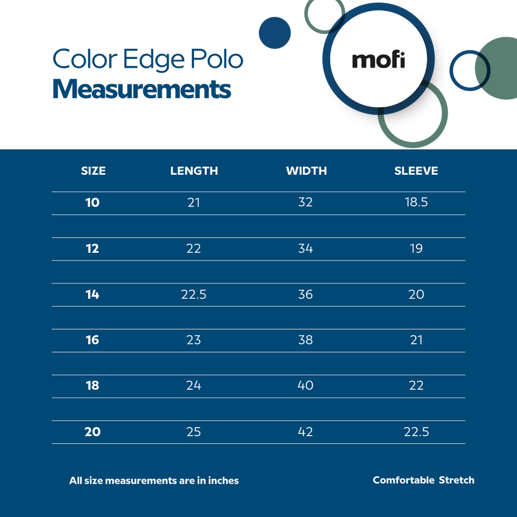 Our black color edge polo is made from a soft black cotton/spandex blend for a comfortable fit with a little stretch. With a spread collar featuring a cobalt trim, 4 black buttons buttons with sapphire lining the inside of the placket and a ribbed cuff with emerald trim on the cuff this polo can be worn tucked in or out perfect for school, work or play.