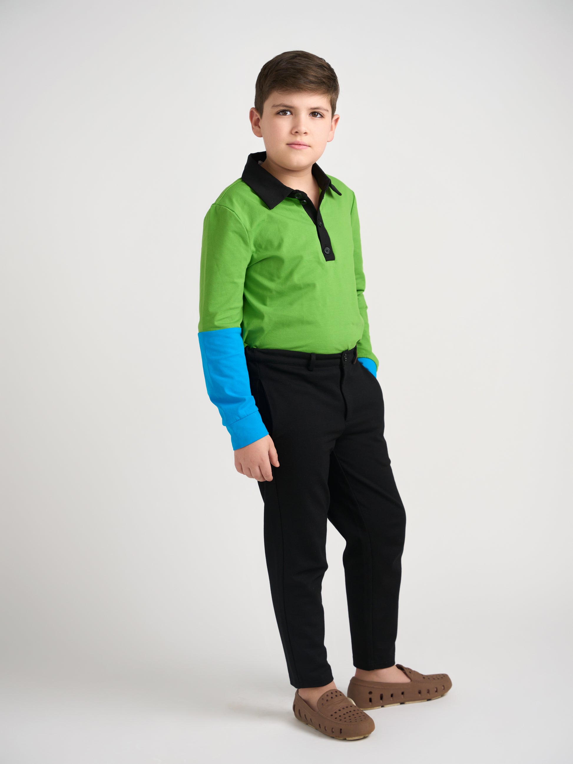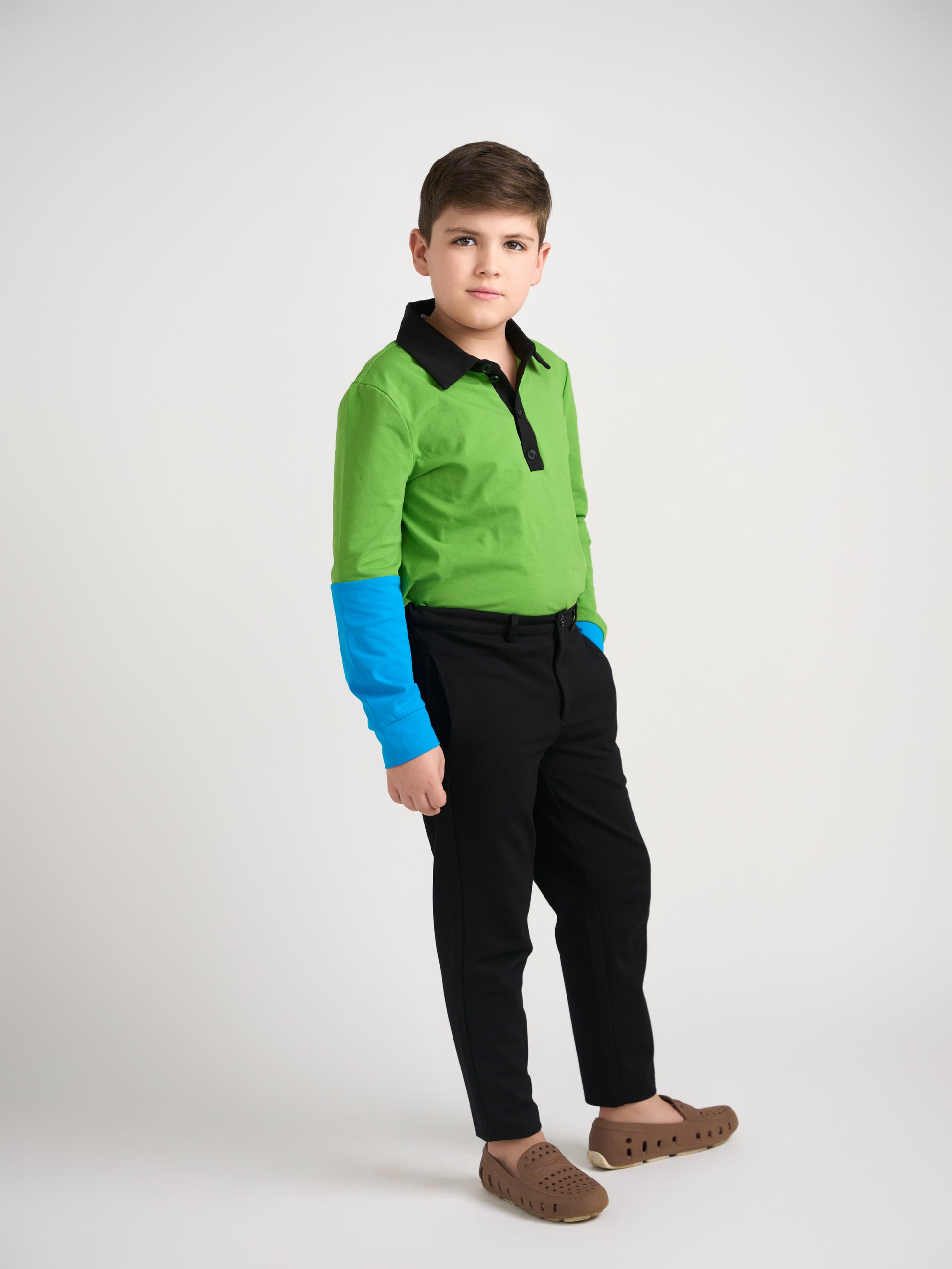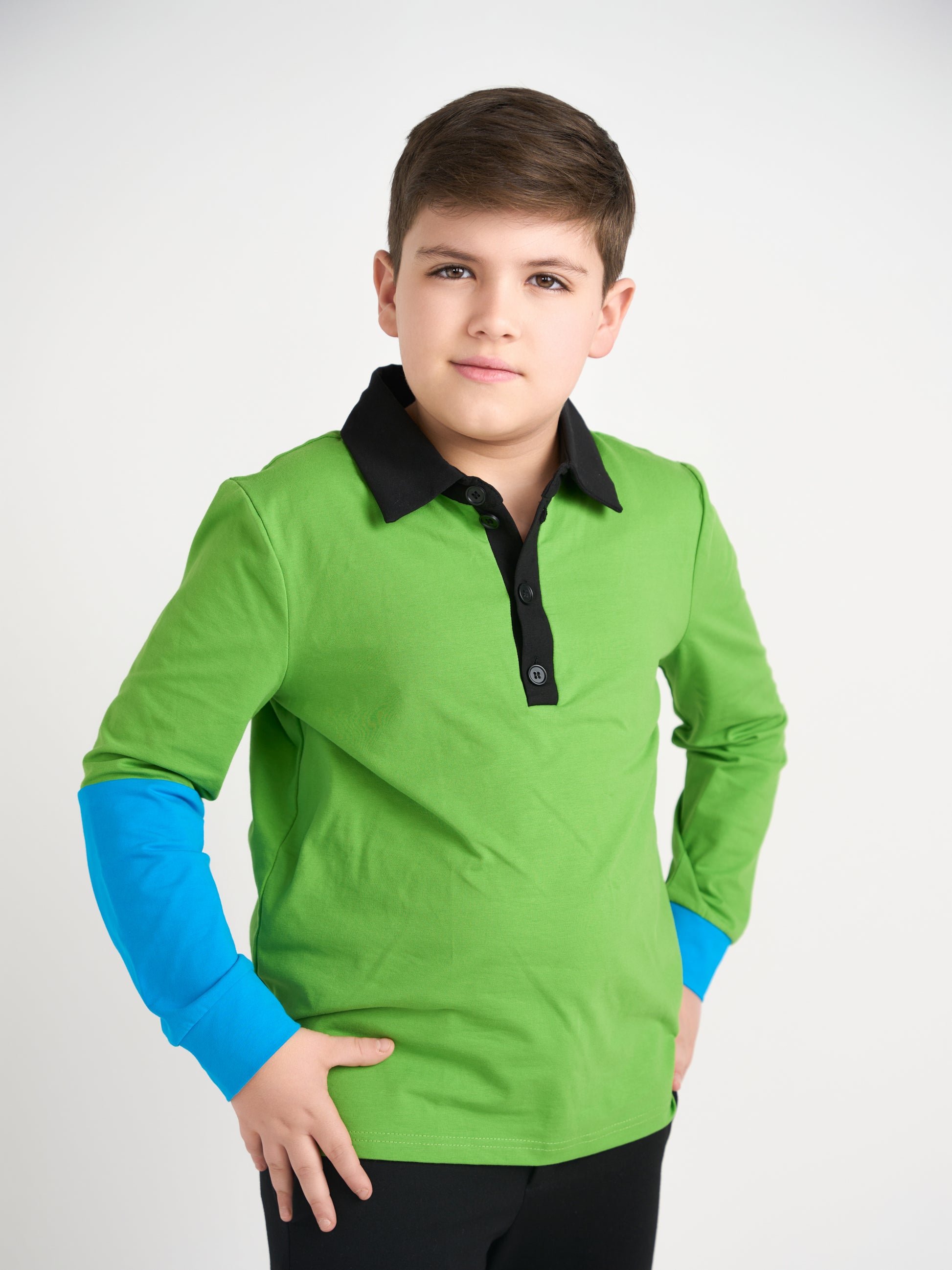 Our emerald color block polo is made from a soft cotton/spandex blend for a comfortable fit with a little stretch. With a spread collar, 4 buttons and a color block cuffed sleeve makes rolling up the sleeves a breeze.
