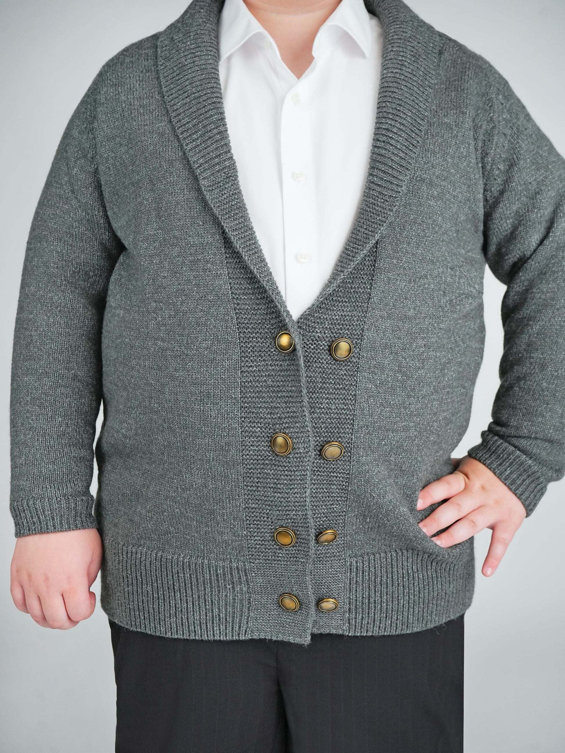 Introducing our gray double breasted sweater, a stylish and cozy addition to your boy’s wardrobe. Crafted from soft, high-quality knit fabric, this sweater offers warmth and comfort, perfect for cooler days. The double-breasted design adds a touch of classic sophistication, featuring sleek brass buttons that enhance the timeless appeal. The versatile grey color makes it easy to pair with any outfit, whether for a casual day out or a special occasion. Durable and easy to care for, this sweater is sure to become a favorite go-to piece for your boy’s everyday style.