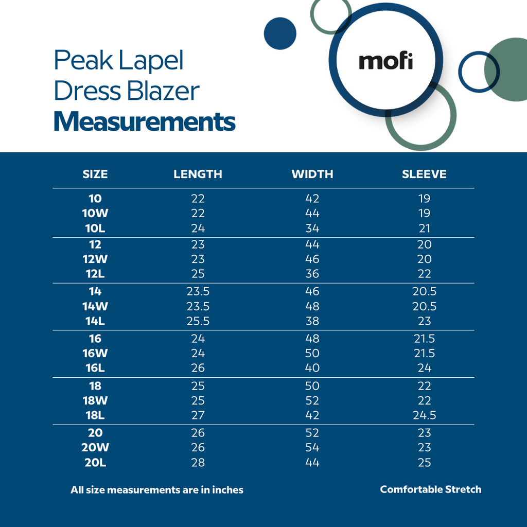 The Peak Lapel Blazer has a similar cut to the Classic Blazer in all sizes with 2 inches longer on the sleeve.
