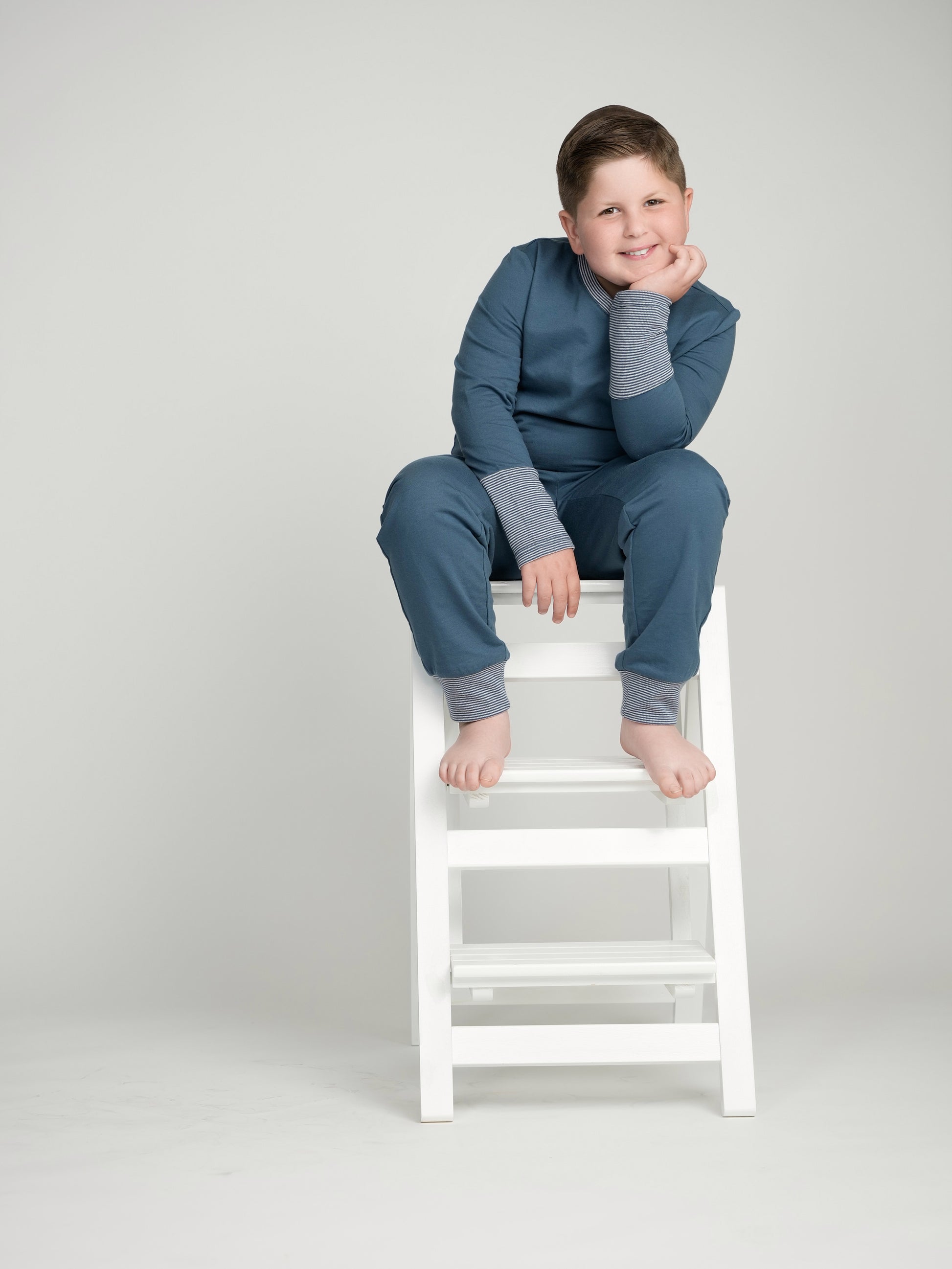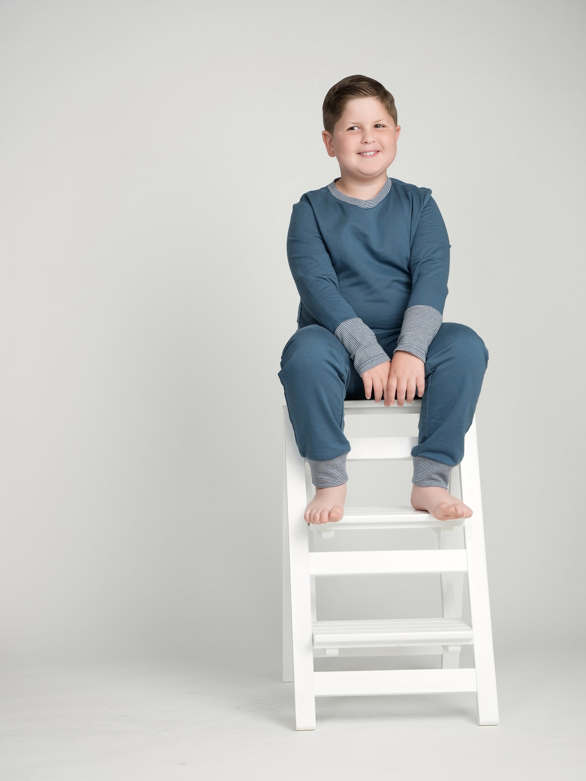 Our sapphire cuffed pajamas featuring a V-neck top, elastic waist and cuffed at the wrist and ankles, these will definitely keep you cozy all night long.