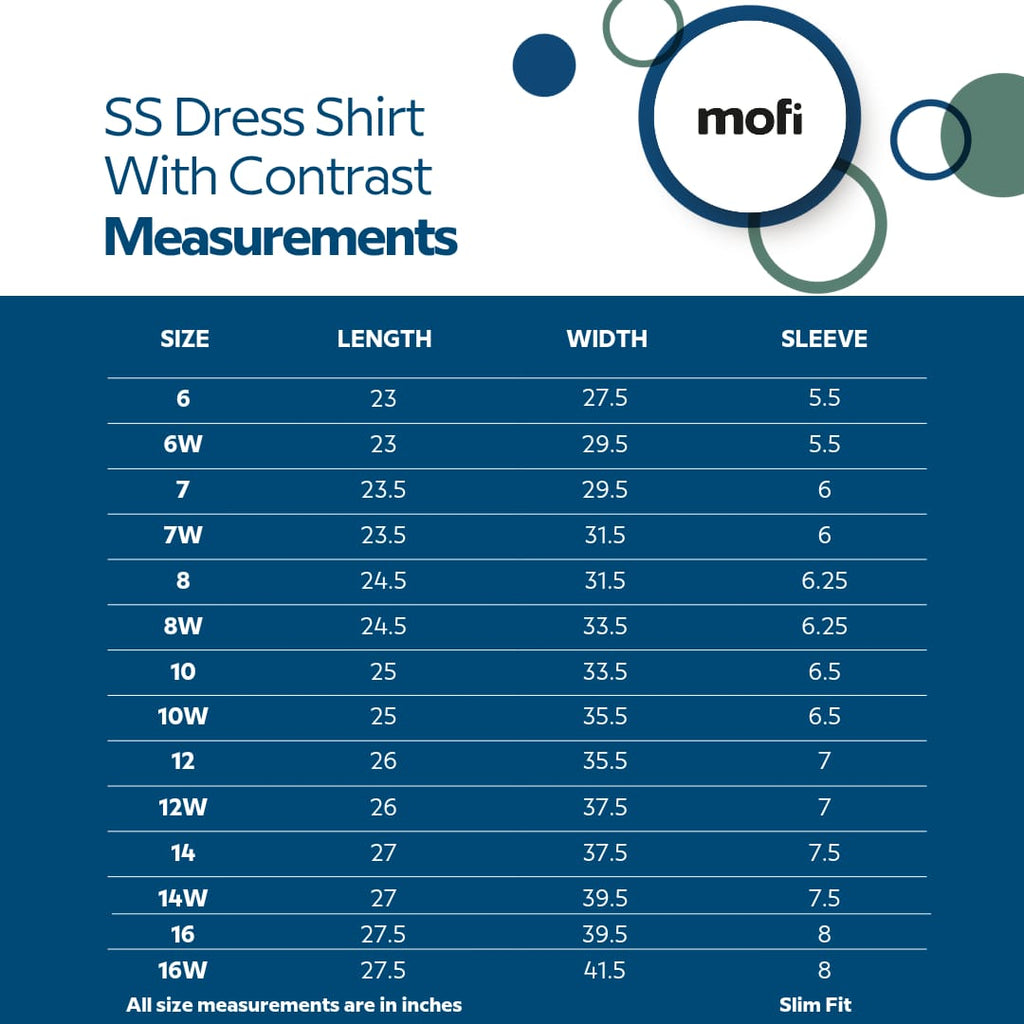 This staple white short-sleeve dress shirt brings the texture of woven cotton to your formal wardrobe with houndstooth interior trim around the neck, clear buttons and white stitching around buttonholes. Wear with one of our blazers and short dress pants for a formal occasion or pair with our casual shorts for a more relaxed vibe. Wide sizes are 2 inches wider than regular sizes. See sizing chart for reference. Regular sizes run slimmer, for more comfortable fit choose wide size or size up.