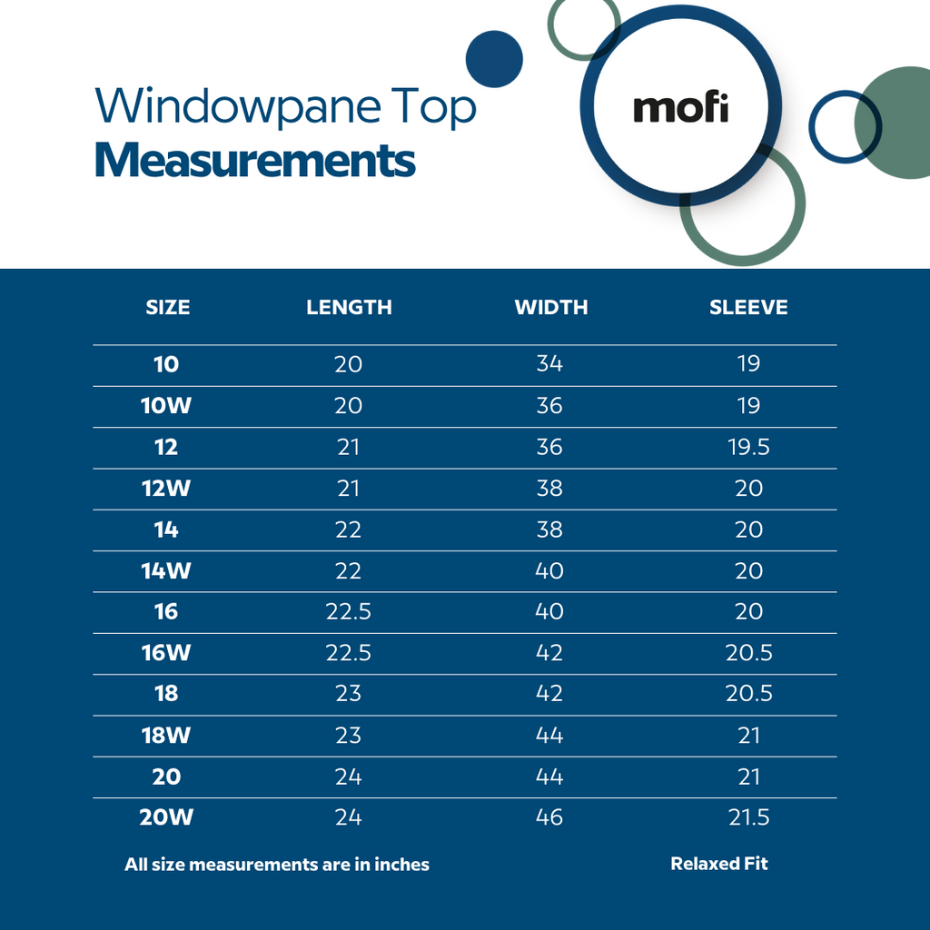 Our windowpane top is a beautiful cobalt blue windowpane pattern with a black collar and a small zipper closure in the back.